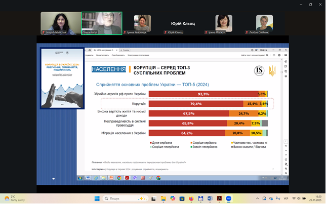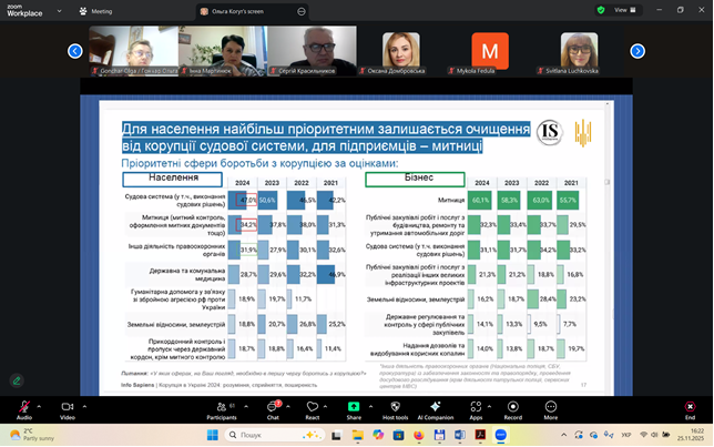 У ході вебінару учасники ознайомилися з актуальними нормами антикорупційного законодавства України, зокрема із вимогами щодо запобігання та протидії корупції, особливостями декларування, відповідальністю за порушення антикорупційних обмежень, а також практичними аспектами врегулювання реального та потенційного конфлікту інтересів.