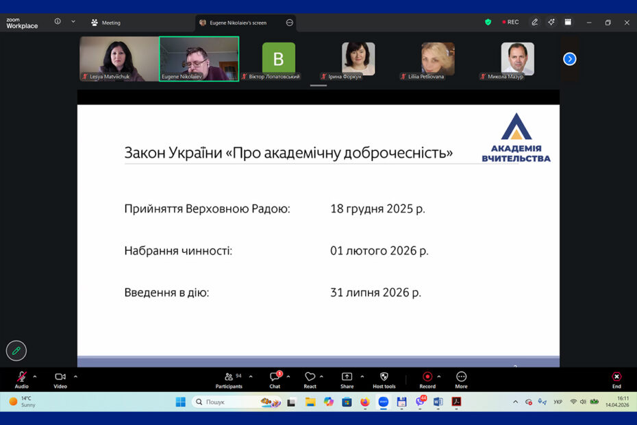 14.04.2026 Центром післядипломної освіти проведено вебінар на тему: «Освітній процес у світлі нових вимог законодавства… Читати далі »Вебінар «Освітній процес у світлі нових вимог законодавства України щодо академічної доброчесності»