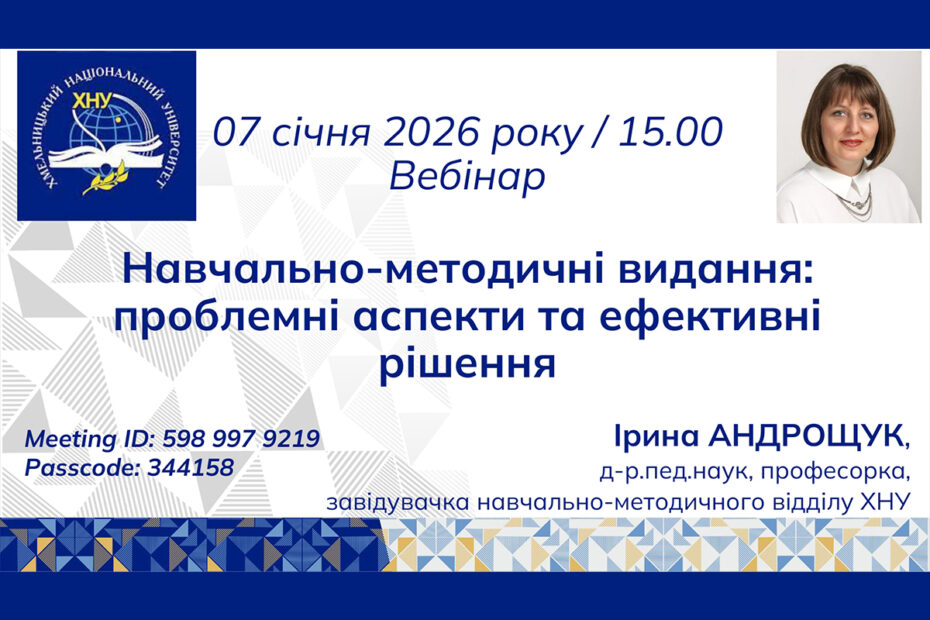 14 січня 2026 року у Хмельницькому національному університеті відбувся вебінар для науково-педагогічних працівників на тему… Читати далі »«Стратегія розвитку Хмельницького національного університету 2026-2030»