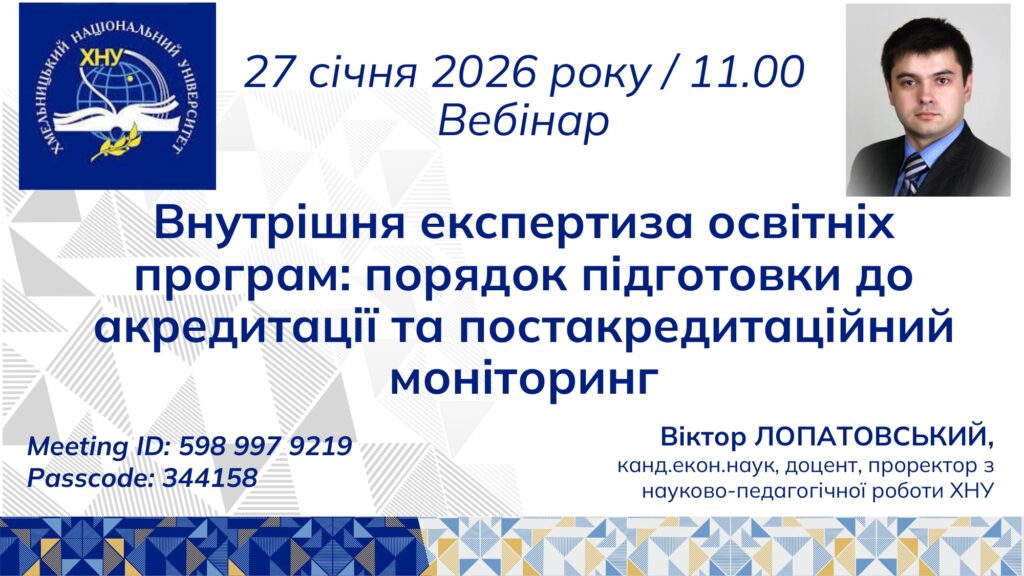 Вебінар на тему: “Внутрішня експертиза освітніх програм: порядок підготовки до акредитації та постакредитаційний моніторинг”28.01.202628.01.2026