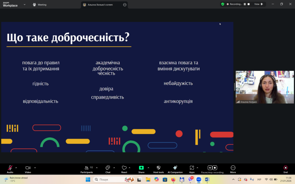 У другій частині заходу Альона Хилько зосередила увагу на питаннях доброчесності як ключової складової освітнього процесу.